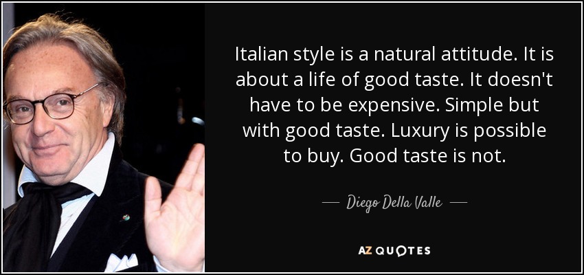 Se Karl Lagerfeld ne faceva una questione di qualità, per cui non aveva buon gusto chi indossava capi cheap (un po’ come potrebbe essere definito chi fa la spesa nei discount o acquista prodotti a marchio anziché dei premium label), al contrario Diego Della Valle non lo riconduce a prezzo e lusso ma piuttosto ad un senso innato, impossibile da acquistare.