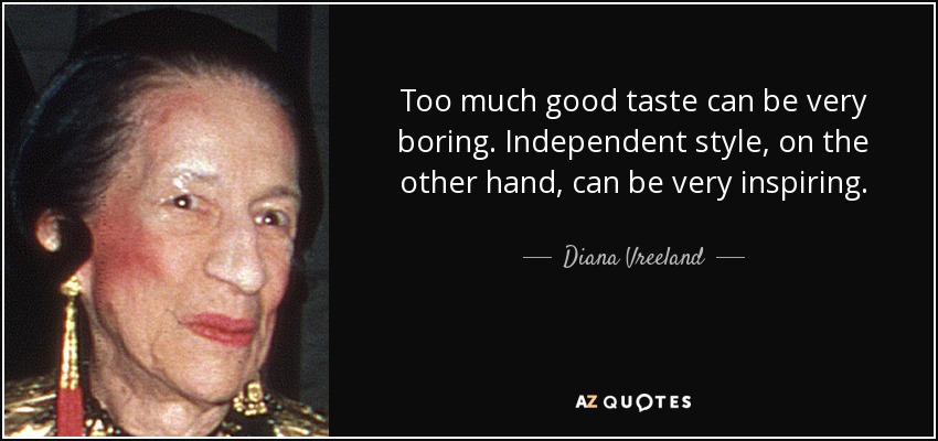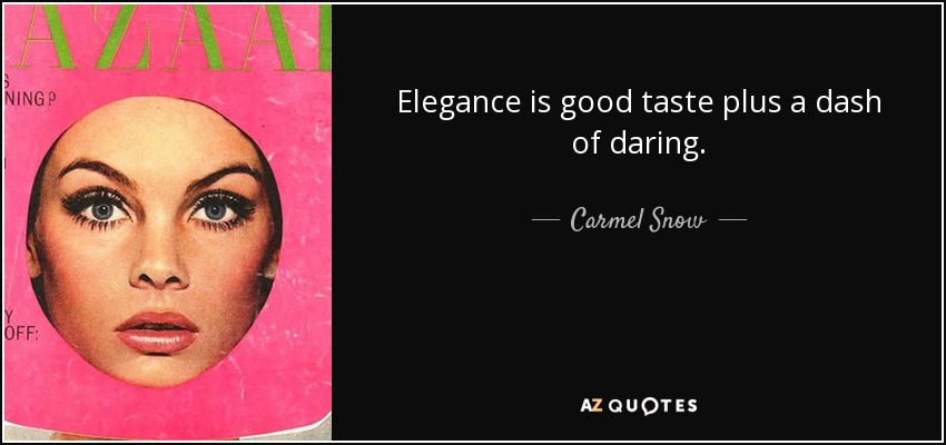 La ricetta di Dior prevedeva semplicità, buon gusto e cura del proprio aspetto come ingredienti del “ben vestire”. Carmel Snow (ndr. caporedattore dell'edizione americana di Harper's Bazaar dal 1934 al 1958) abbinava al buon gusto sempre una dose di audacia; coraggio di uscire dagli schemi anche per Diana Vreeland (ndr. influente giornalista statunitense specializzata nella moda, considerata un'icona di stile negli anni ’60.).